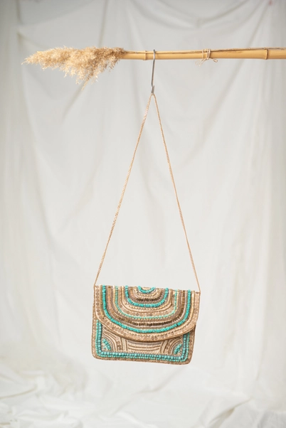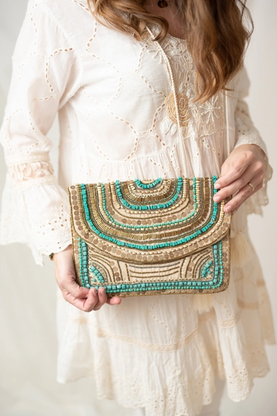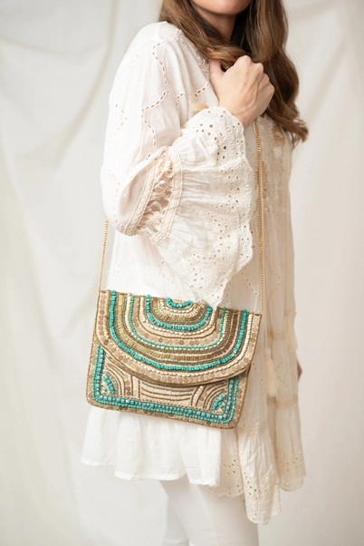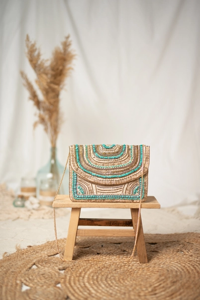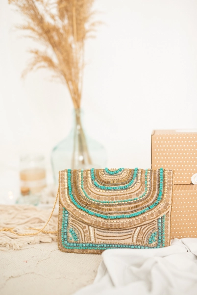 Decorated with small beads, which add a sophisticated and elegant touch to the design.