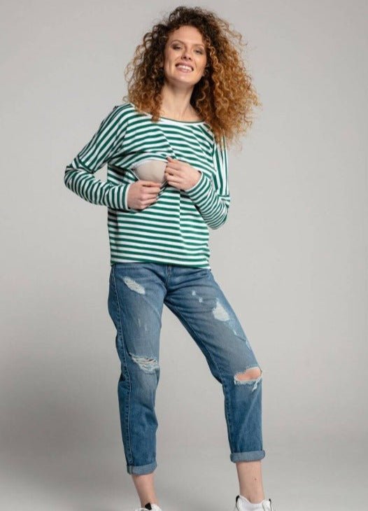 Breastfeeding sweatshirt from the STRIPE collection. Always be fashionable with the sailor striped breastfeeding blouse