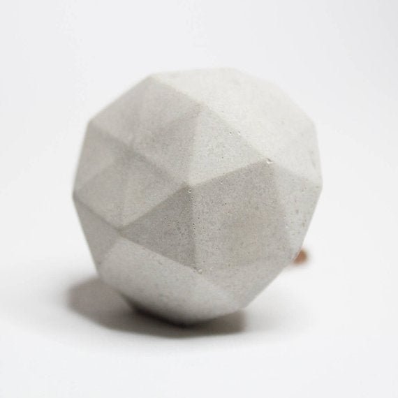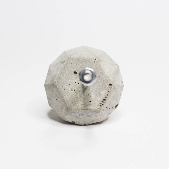 Concrete cabinet knob or hook in the shape of a round diamond.