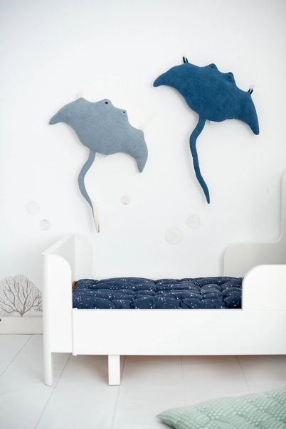 A unique Doco Wall-Play element to which the marine world will give a nice touch to children’s rooms. In addition, our fun manta rays can serve as original bed cushions.