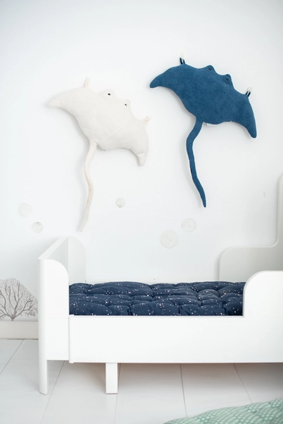 A unique Doco Wall-Play element to which the marine world will give a nice touch to children’s rooms. In addition, our fun manta rays can serve as original bed cushions.