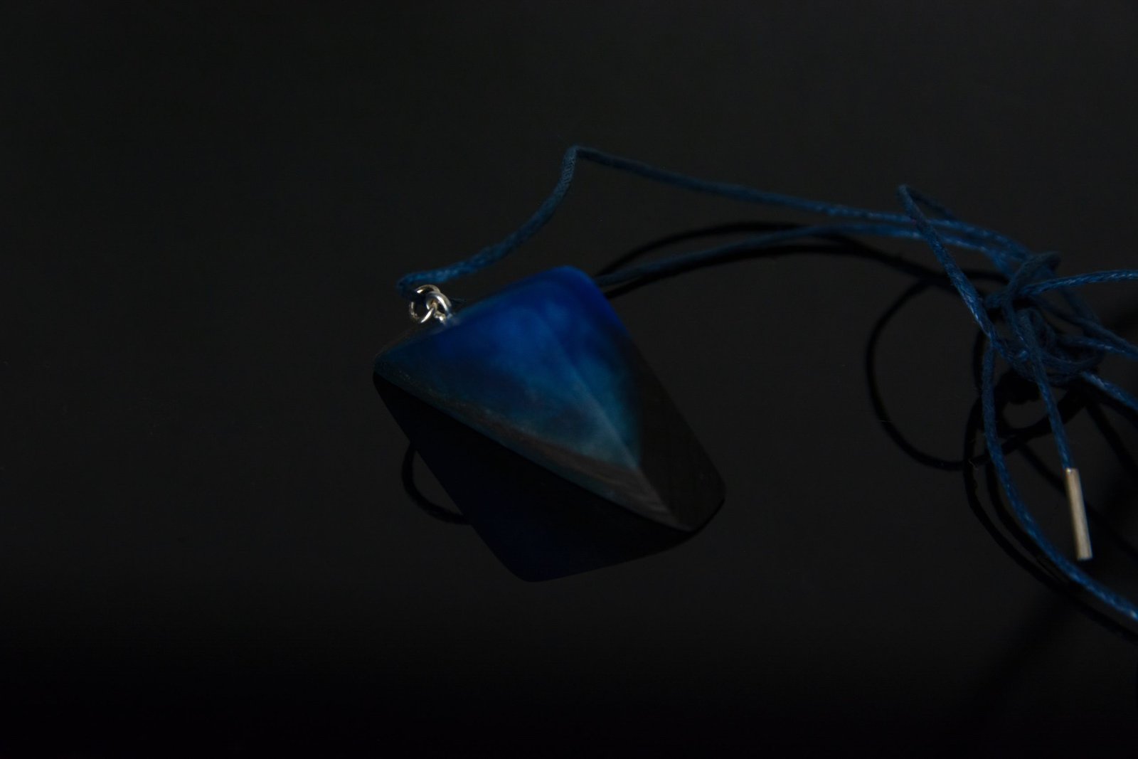 Black oak and resin neck pendant | Blue secret