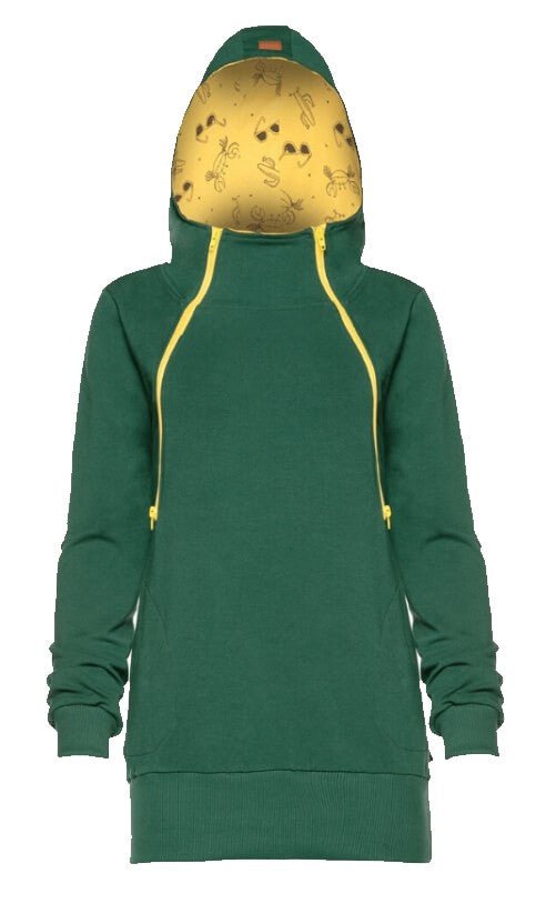 You can wear such a hoodie not only when you are breastfeeding – the system of zip fasteners is practical and decorative at the same time, which makes the hoodie very universal. At first glance, it is hard to tell what these clever zip fasteners are for. The system of zip fasteners guarantees easy and discreet nursing.