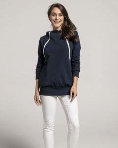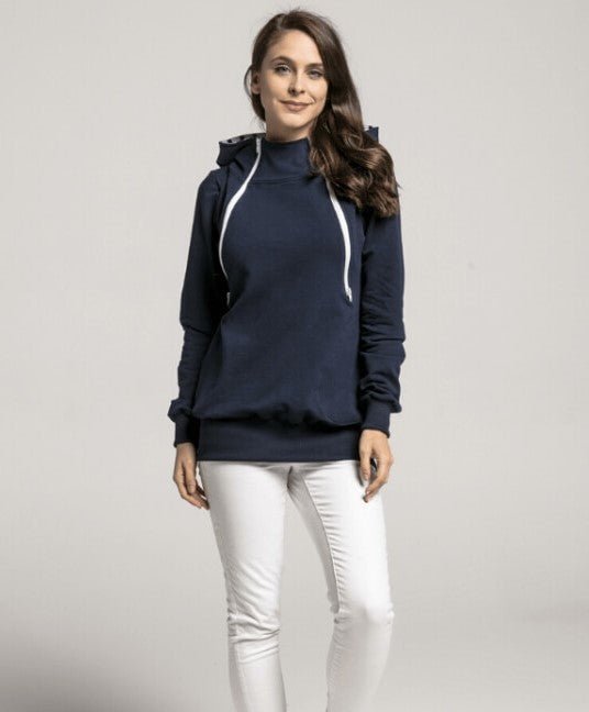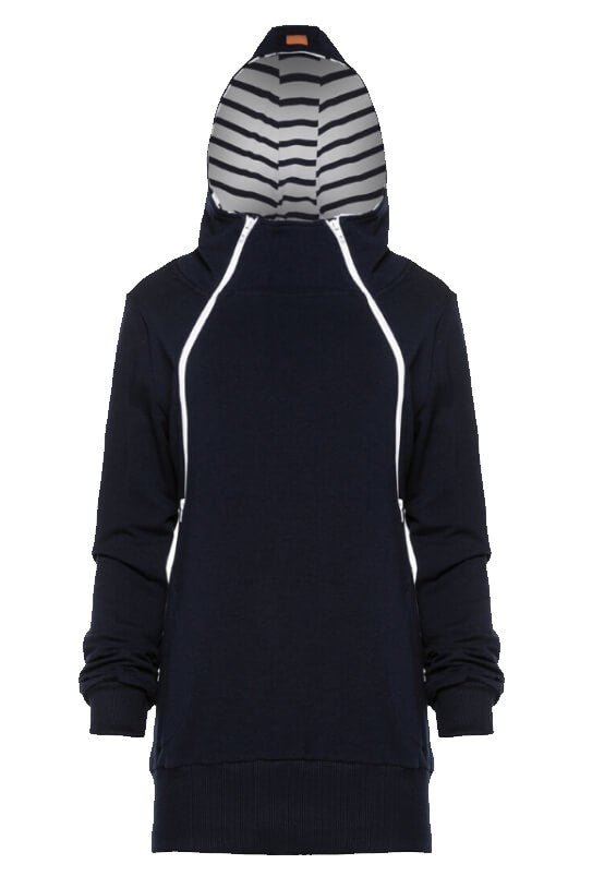 You can wear such a hoodie not only when you are breastfeeding – the system of zip fasteners is practical and decorative at the same time, which makes the hoodie very universal. At first glance, it is hard to tell what these clever zip fasteners are for. The system of zip fasteners guarantees an easy and discreet nursing.