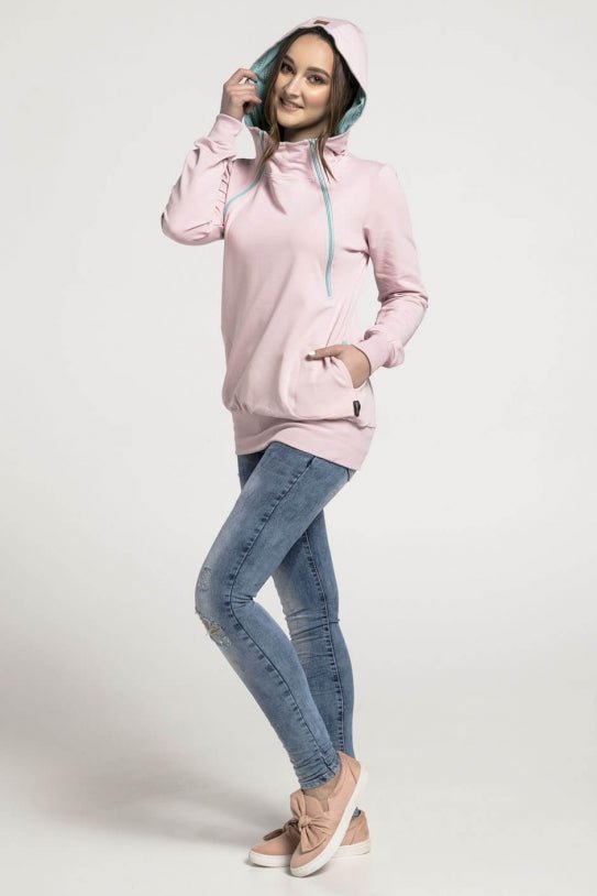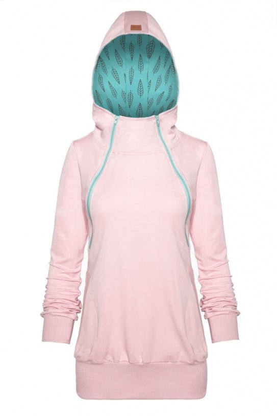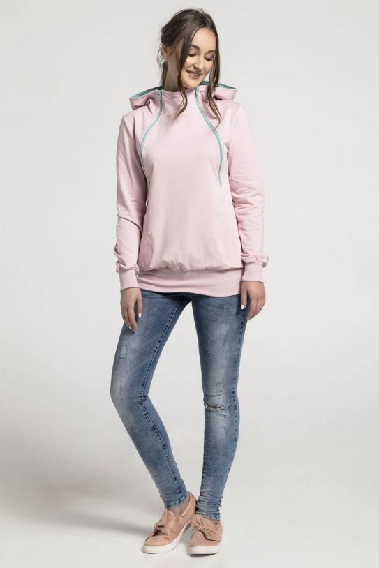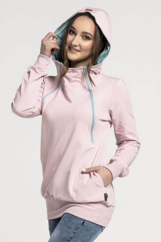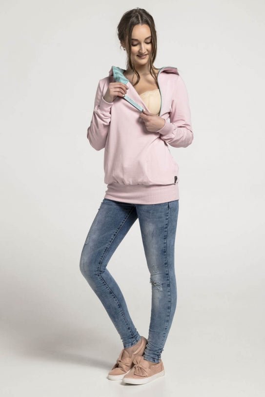 Breastfeeding light pink cozy hoodie – MINT leaves!