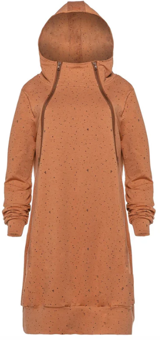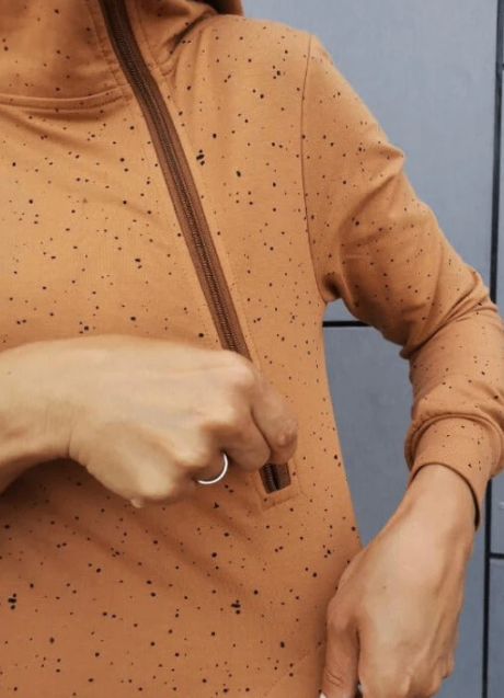 You can wear such a hoodie dress not only when you are breastfeeding – the system of zip fasteners is practical and decorative at the same time, which makes the hoodie very universal. At first glance, it is hard to tell what these clever zip fasteners are for. The system of zip fasteners guarantees easy and discreet nursing.