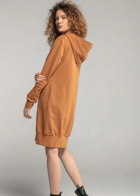 Breastfeeding trendy hoodie dress – Mustard dots hoodie!