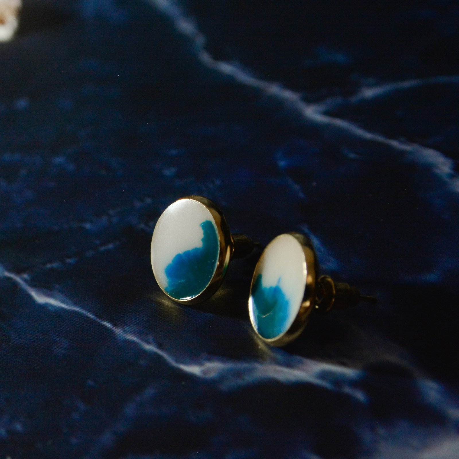 These earrings were created using epoxy resin. Tips stainless steel.