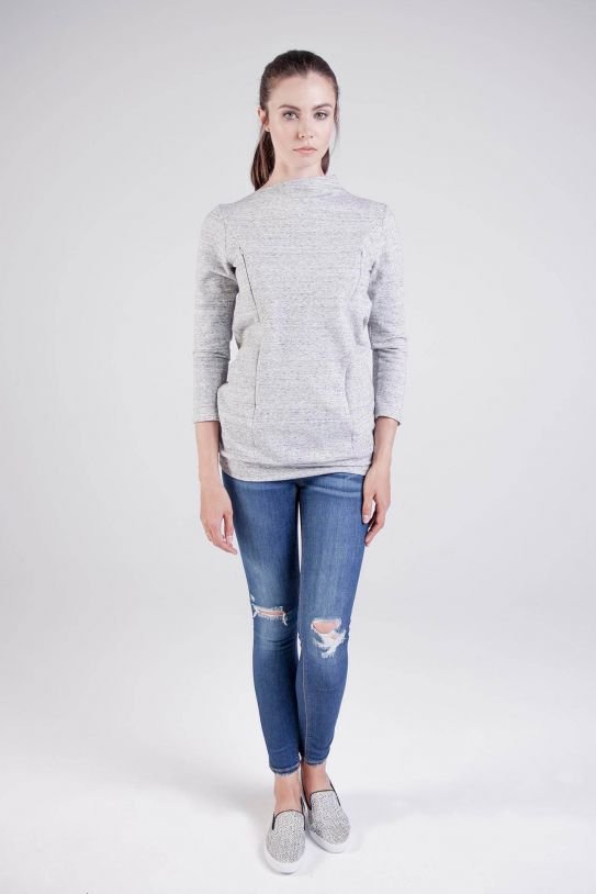 In our projects, we try to maintain maximum simplicity, which allows creating fashionable and functional clothes for every woman. The sweatshirt is designed for breastfeeding mothers, but it is also possible to reach women who have already finished breastfeeding their babies. The slim fit pattern perfectly emphasizes the waist, making the silhouette appear slimmer.