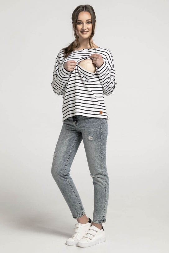 Breastfeeding sweatshirt from the STRIPE collection. Always be fashionable with the sailor striped breastfeeding blouse